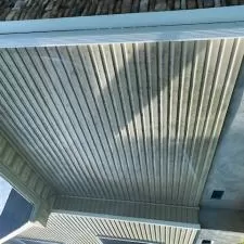 We got a call from a customer out of Dallas, NC looking to get several houses on his properties cleaned. This home was extremley dirty as it had not been cleaned for many years. There was green algae, black marks on some of the trim, cob webs, and dirt. With Vinyl siding we NEVER use high pressure as this will oxidize the siding and cause it to have a chalky look that cannot be fixed with a normal house wash. To stay away from this, we used our soft washing process which is to use low pressure and let our cleaning agent do the work. This home had plants and decorative wood that we did not want to get damaged so we removed the decorative items and placed them to the side. We then rinsed plants and bushes before applying our cleaning agent to prevent any damage. Typically on houses that have a thick layer of green algae like this one, we want to make sure all of the organic material is removed in the first or second pass so we decided to wash this side with a higher concentration of our cleaning agent. After the house was clean, the customer was blown away by how clean the siding looked. We went on to clean two more homes in the area.